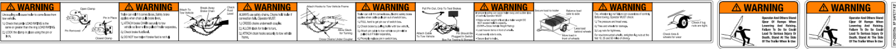 The 2001156 Safety General Warnings Decal is a vital safety accessory designed to provide clear and concise warnings on trailers and equipment. This decal serves as a constant reminder of general safety protocols, helping to prevent accidents and promote safe operation.